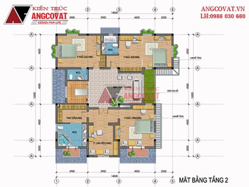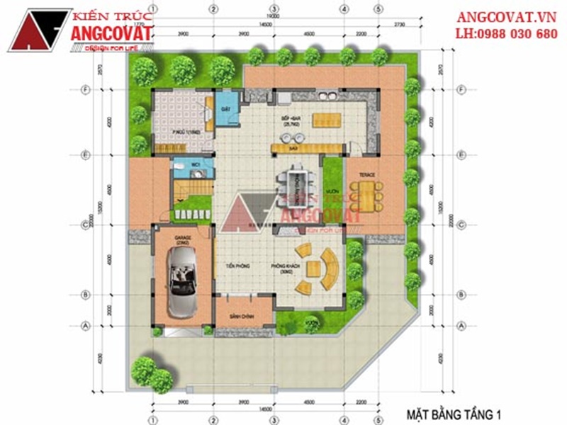 Hướng dẫn cách thiết kế mặt bằng mẫu nhà 2.5 tầng đơn giản mặt tiền 14m diện tích 140m2