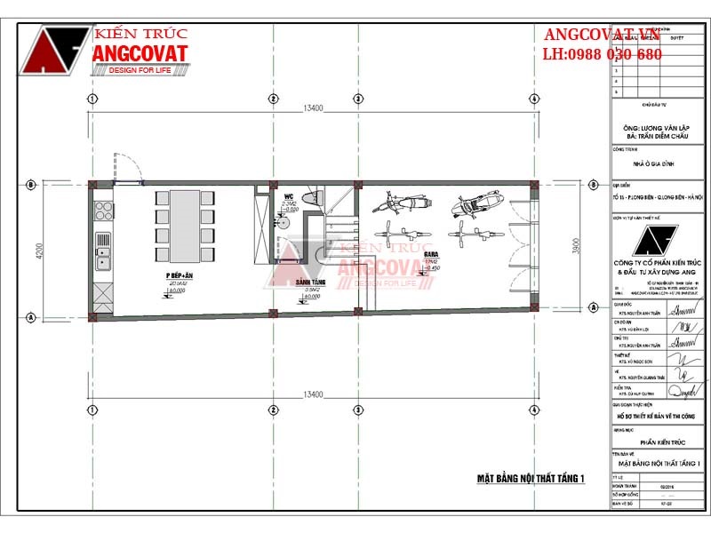 Chủ đầu tư cho biết đây là ngôi nhà thứ 2 của anh nên cũng không cần sự đầu tư quá lớn, Công năng tầng 1 được xử lý hết sức đơn giản gồm: gara để xe 19mm2, sảnh tầng 3,5m2, phòng bếp kết hợp phòng ăn 20,5m2, phòng vệ sinh 2,3m2. Diện tích chính là nơi làm phòng bếp và phòng ăn. Tầng 1 của một ngôi nhà ống nhỏ hẹp như thế này thường thì sẽ không để phòng khách mà chủ yếu là bếp ăn và không gian gara để phương tiện giao thông.
