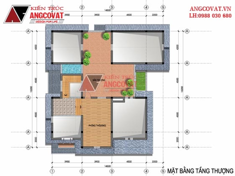 Thiết kế mặt bằng tầng tum cho mẫu nhà 2.5 tầng đơn giản sang trọng diện tích 160m2 kiểu đồng quê