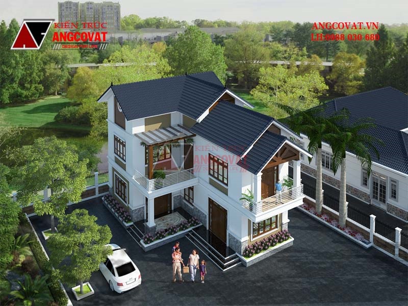 Giới thiệu kiến trúc mẫu nhà 2.5 tầng hiện đại hình chữ L mái thái diện tích 140m2