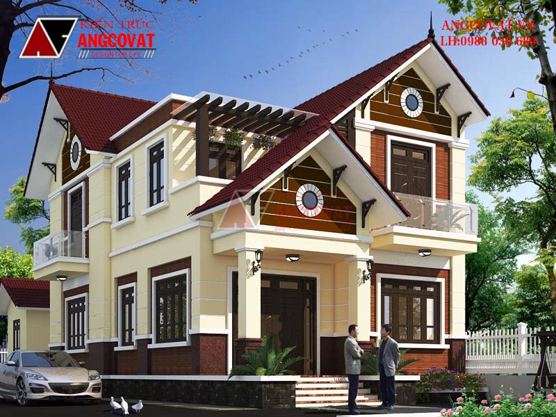 Mẫu nhà đầu tiên mà chúng tôi muốn giới thiệu là thiết kế nhà hiện đại của gia đình anh Quang mang sắc đỏ của hệ mái thái, màu đỏ được coi là màu mang lại sự may mắn, tốt lành hơn nữa lại rất hợp với tuổi và mệnh của chủ nhà. Khi nghe kiến trúc sư chúng tôi phân tích về cách lựa chọn màu sắc, cách lựa chọn vật liệu khiến gia chủ là anh Quang rất hài lòng và càng thêm phần tin tưởng về chuyên môn, kinh nghiệm của các kiến trúc sư. Mỗi một ngôi nhà sẽ mang dấu ấn riêng, thể hiện phần nào tính cách sở thích của gia chủ, nên trước khi bắt tay vào thiết kế thi công xây dựng, chúng tôi luôn trao đổi với chủ nhà, đưa ra các phương án để gia chủ lựa chọn phương án tối ưu nhất, phù hợp với điều kiện hoàn cảnh của gia đình nhất. Chính những điều này mang tới cho khách hàng sự thoải mái, tính chuyên nghiệp cao và có lẽ chính điều này đã giúp cho công ty chúng tôi ngày càng mở rộng và phát triển thương hiệu kiến trúc Angcovat.