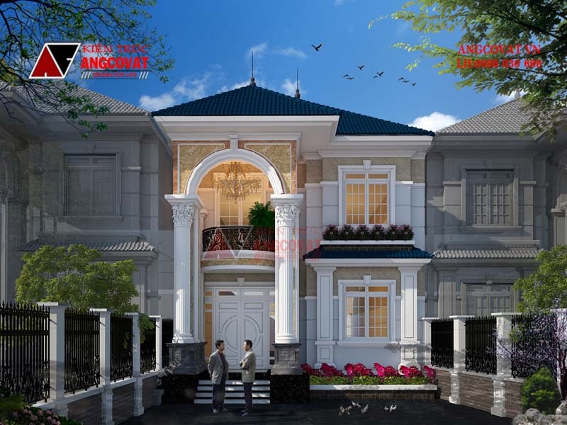 Phong cách kiến trúc cổ điển cho mẫu nhà 2 tầng mái thái 5 phòng ngủ sang trọng