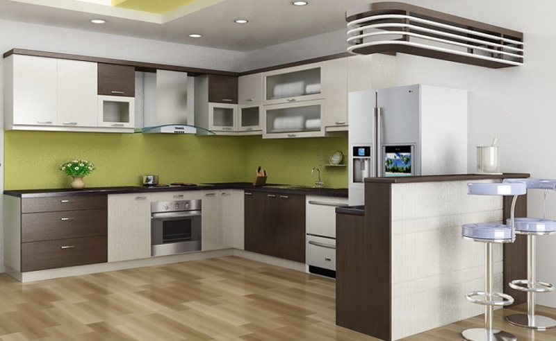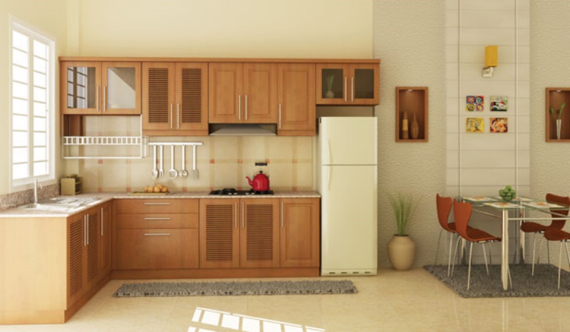 - Tủ bếp: Yêu cầu của tủ bếp trước hết phải đảm bảo về mặt công năng sử dụng bao gồm: khu vực chứa đồ, khu vực chứa dụng cụ nấu nướng, khu sơ chế, khu rửa, khu nấu nướng. Khi bố trí các căn bếp nhỏ như bố trí phòng ăn bếp 20m2 thì việc phân chia không gian chức năng càng trở nên cần thiết vừa đảm bảo vừa vặn với diện tích mà không thiếu sót tiện ích.