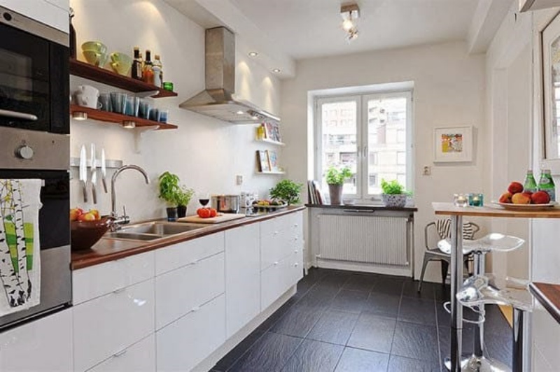 Màu sắc chủ đạo ảnh hưởng không nhỏ tới sự sáng sủa của căn bếp. Một gian bếp mang màu sắc trầm ấm đơn giản với tone màu ghi chủ đạo sẽ mang tới cảm giác nhẹ nhàng, đầm ấm phù hợp với những ngôi nhà mang thiết kế hiện đại. Một gian bếp lựa chọn tone màu trắng sáng trông rất sáng sủa và sạch sẽ hứa hẹn sẽ mang tới một không gian gần gũi, nhã nhặn.