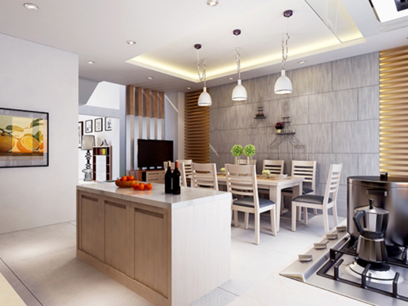 Việc thu đón ánh sáng tự nhiên không những có tác dụng tạo không gian mở thoáng đãng, mới mẻ mà còn tác động đến tâm lý của người sử dụng. Ánh sáng mang tới một cảm giác tươi trẻ và tràn đầy sức sống, còn gì tuyệt vời hơn khi được dùng bữa cùng những người thân yêu trong một không gian sống chan hòa như vậy. Nếu như ngôi nhà của bạn là ngôi biệt thự 3 tầng đẹp có lợi thế về diện tích thì việc mở cửa sổ hay cửa ra vào trở nên dễ dàng hơn. Ngược lại đối với các căn nhà phố, nếu không có điều kiện mở cửa, gia chủ hoàn toàn có thể sử dụng đèn ánh sáng nhân tạo.