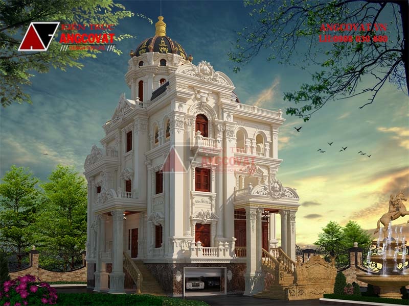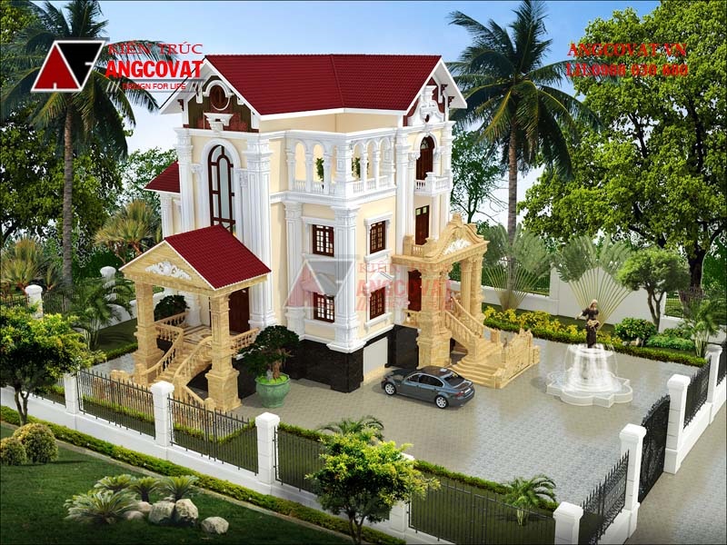 Lâu đài 3 tầng cổ điển mang những đặc trưng của kiến trúc lâu đài cổ điển với những chi tiết trang trí cầu kỳ, mềm mại, màu sắc sang trọng, mĩ lệ tuy nhiên với những cách xử lý kiến trúc khác nhau và quy mô khác nhau, nhu cầu công năng khác nhau, chúng ta có thể xây dựng lâu đài 3 tầng cổ điển nguy nga tráng lệ hoặc có thể là những kiểu lâu đài 3 tầng mini để tiết kiệm chi phí xây dựng và đơn giản hơn, thời gian xây dựng cũng nhanh hơn. Nói về chi phí xây dựng, cùng một kiểu kiến trúc nhưng vẫn có nhiều cách thực hiện, nhiều giải pháp khác nhau để tiết kiệm chi phí. Với những kinh nghiệm trong thiết kế lâu đài, angcovat giới thiệu một số mẫu lâu đài 3 tầng có vẻ đẹp hoàn mĩ và cực chất.