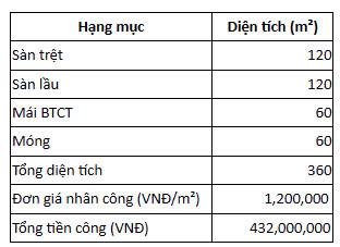 | Đơn giá nhân công (VNĐ/m²) | 1,200,000 |