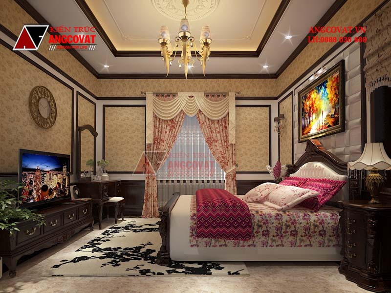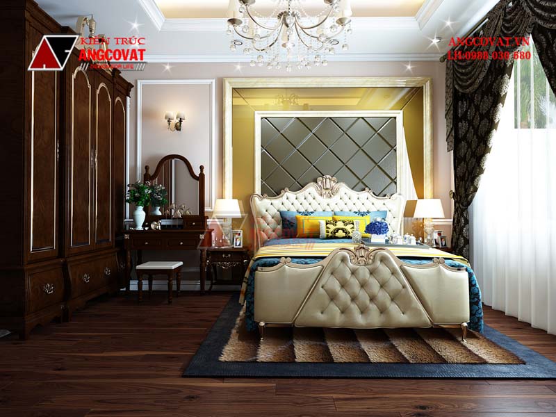 Bố trí màu sắc thiết kế phòng ngủ 20m2 theo kiểu dáng cổ điển