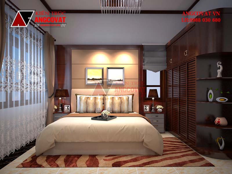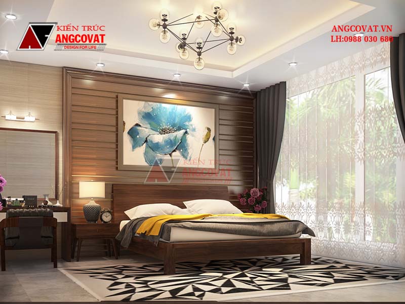 Việc bố trí giường ngủ trong mẫu thiết kế phòng ngủ 20m2 rất quan trọng