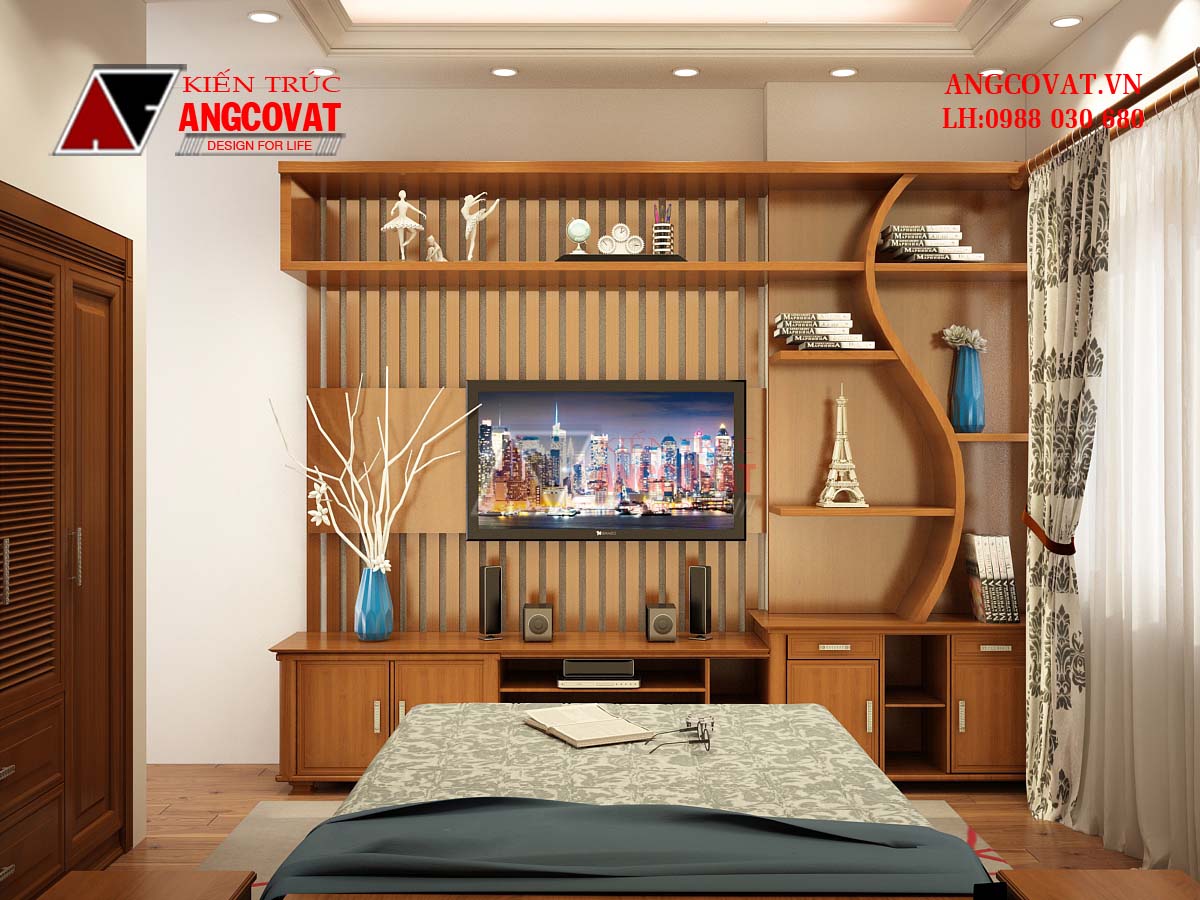 Kệ tivi luôn được bố trí đối diện giường ngủ, các hộ gia đình nếu muốn tiết kiệm diện tích có thể sử dụng tivi màn hình phẳng và gắn lên tường. Còn nếu muốn tích hợp sử dụng các đồ nội thất thông minh thì có thể sử dụng kệ tivi vừa để tivi trong phòng vừa để các đồ lặt vặt trong phòng gọn gàng, ngăn nắp.