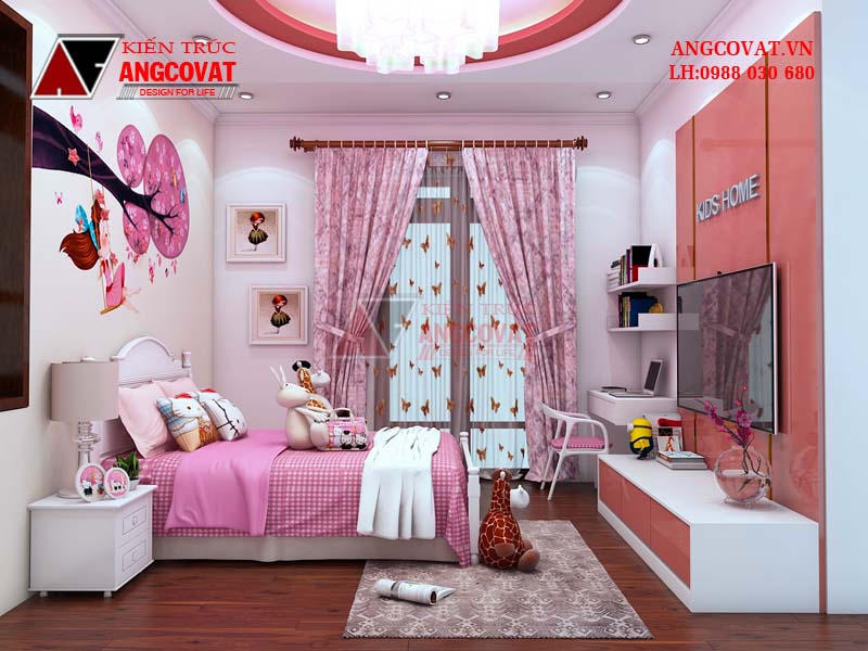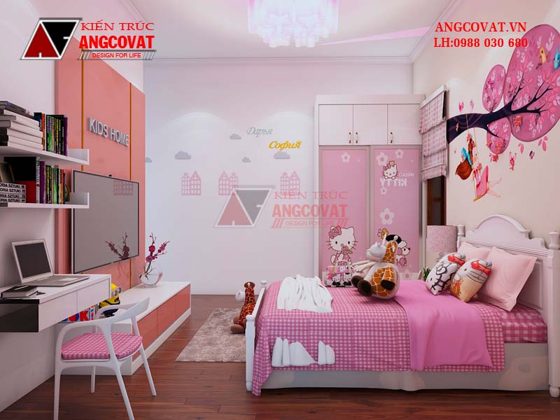 Không gian nội thất mẫu thiết kế phòng ngủ 20m2 nhà 3 tầng cho con gái