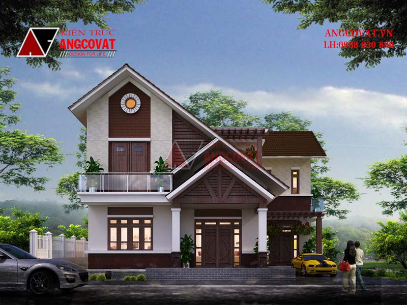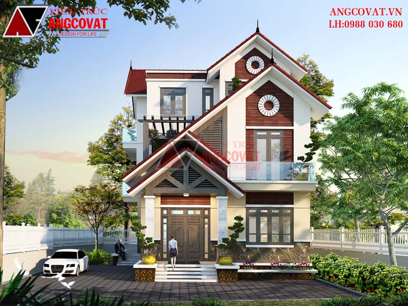 Thiết kế mẫu biệt thự 1 trệt 2 lầu đẹp mái ngói đỏ tươi BT304098