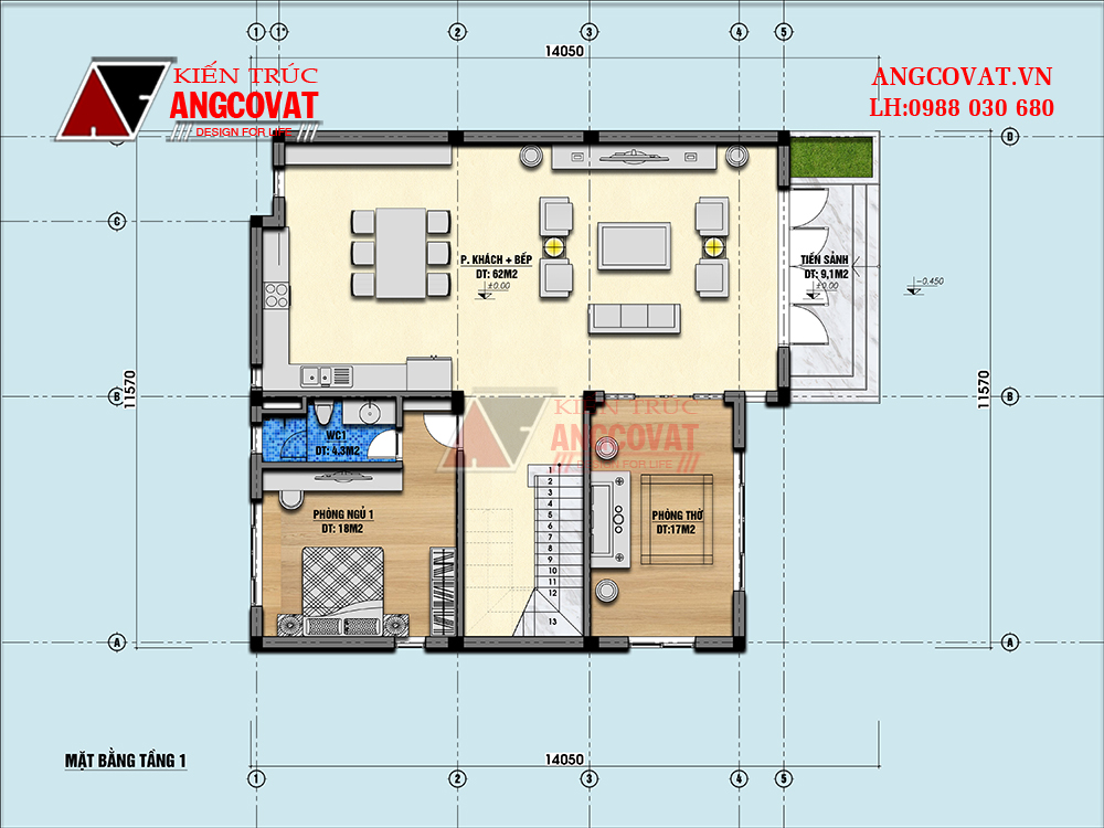 Để có thể sở hữu không gian hợp lý và công năng logic liên hệ ngay với kiến trúc Angcovat chúng tôi qua Hotline: 0988 030 680