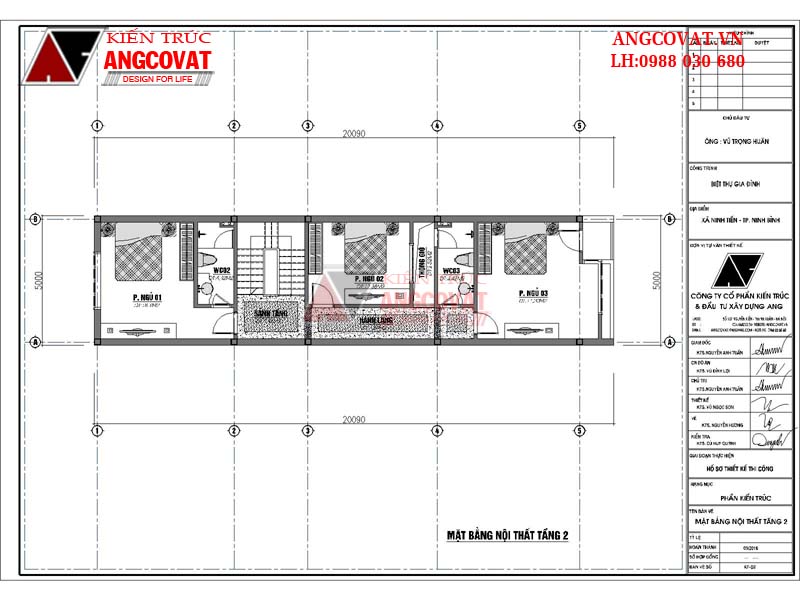 Mẫu nhà ống 2 tầng 1 tum trên đây được kiến trúc sư Angcovat thiết kế cho chủ đầu tư là anh Vũ Trọng Huấn ở Tam Điệp – Ninh Bình với kích thước 5x19m, chi phí đầu tư dự kiến 1.3 – 1.5 tỷ đồng. Mẫu nhà này rất phù hợp với các gia đình ở thành phố bị hạn chế về kích thước mặt tiền, yêu thích kiến trúc hiện đại, mong muốn có một ngôi nhà với nhiều phòng chức năng khác nhau được bố trí khoa học và hợp lí.
