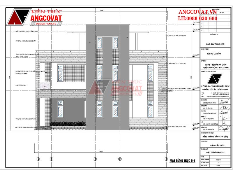 Mặt đứng trục 5 – 1: Bản vẽ thiết kế nhà ống 2 tầng 1 tum hiện đại