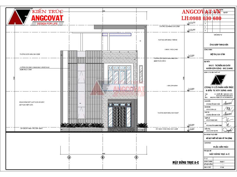 Mặt đứng trục A – C: bản vẽ thiết kế nhà ống 2 tầng 1 tum đáng mơ ước