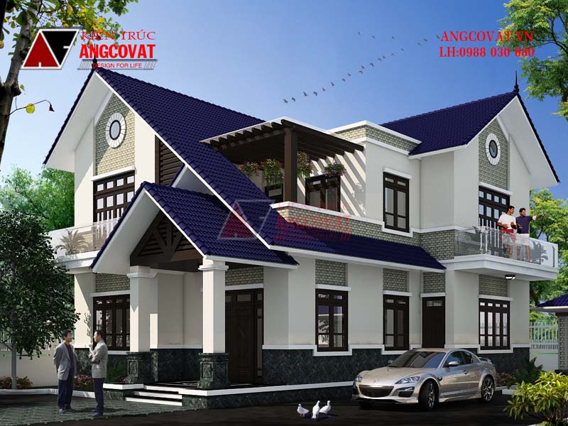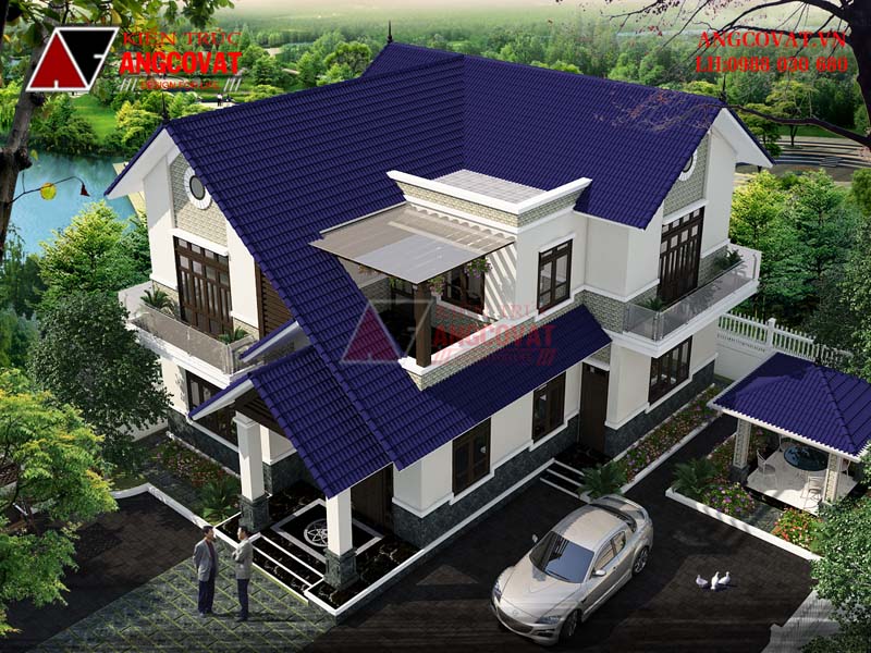 Mẫu thiết kế biệt thự mini 140m2 mái thái do kiến trúc sư Trần Đức Kiên chủ trì thiết kế chính là món quà mà Angcovat dành tặng cho gia đình anh Tùng ở Phú Thọ. Mang dáng dấp của ngôi biệt thự hiện đại, khỏe khoắn trong từng khối hình, đường nét nhưng cũng không kém phần duyên dáng, gần gũi, mẫu nhà hứa hẹn sẽ mang lại không gian tĩnh dưỡng thư thái cho gia đình.