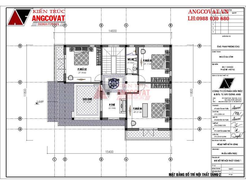 - Tầng 2: Sảnh tầng 6m2, Phòng thờ 9m2, sân chơi 14m2, Phòng ngủ 2: 19m2, Phòng ngủ 3: 17m2, Phòng ngủ 4: 27m2, WC2: 5m2.