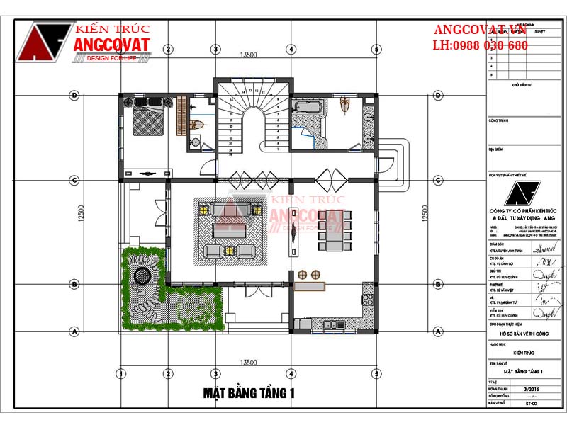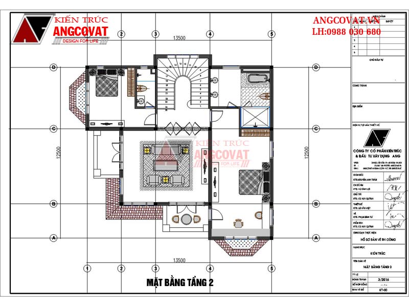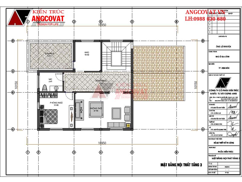- Tầng áp mái: Bỏ trống - Diện tích tầng áp mái: 135m2