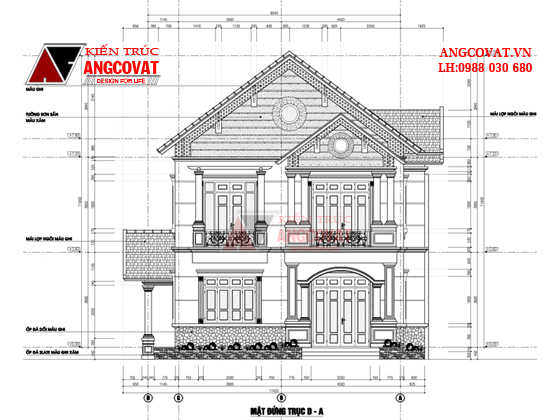 Không gian thiết kế mặt đứng trục D - A cho mẫu nhà đẹp 8x11