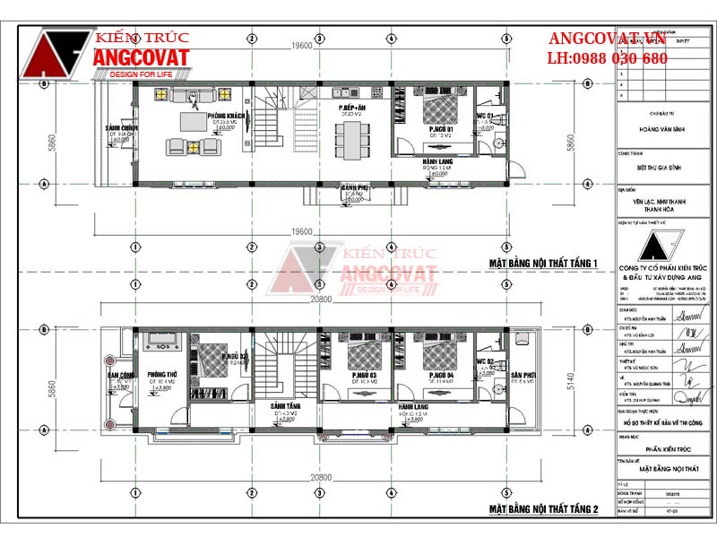 Tập hồ sơ thiết kế bản vẽ nhà 2 tầng mặt tiền 6m đầy đủ, logic