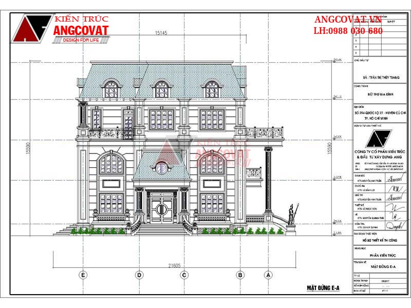 Hy vọng với mẫu kiến trúc phong cách Châu Âu tuyệt vời này, bạn có thêm những thông tin cần thiết để chuẩn bị cho ngôi nhà tương lai của mình. Nếu có phản hồi hoặc thắc mắc về thiết kế và thi công nhà ở, biệt thự, vui lòng liên hệ trực tiếp để chúng tôi tư vấn tốt nhất cho bạn. Hotline: 0988.030.068. Hoặc theo dõi websize Angcovat.vn để tham khảo nhiều mẫu nhà, biệt thự đẹp khác.