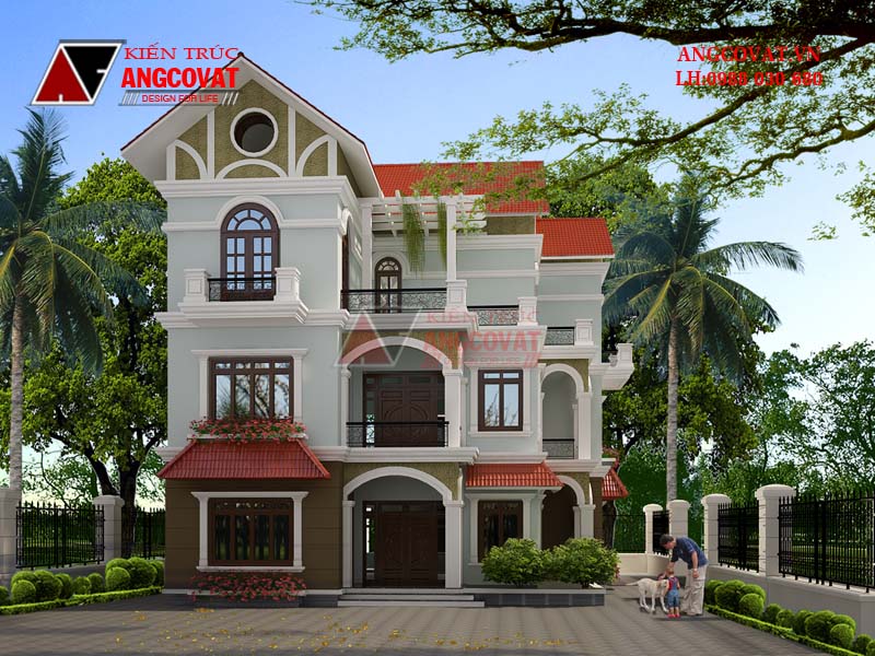 Phối cảnh 01 mẫu thiết kế nhà mặt tiền 13m mái thái phong cách tân cổ điển