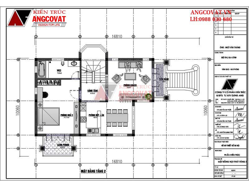- Tầng 2: phòng ngủ 2, 1 phòng khách, 1 bếp ăn, 1 sảnh tầng, 1 sảnh phòng, vệ sinh 3, 1 tiền sảnh