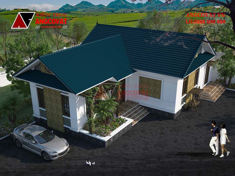 Bản vẽ thiết kế nhà vườn 160m2 mái thái xanh lam