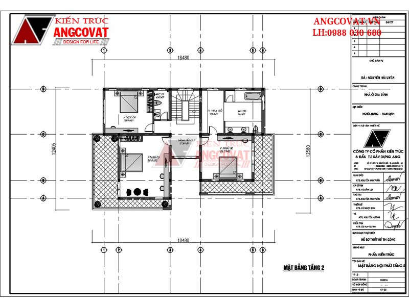 Mặt bằng tầng 2 mẫu nhà mặt tiền 12m 3 tầng