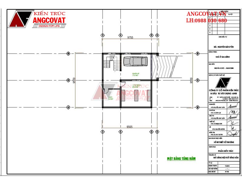 Mặt bằng tầng hầm mẫu nhà mặt tiền 12m 5 phòng ngủ