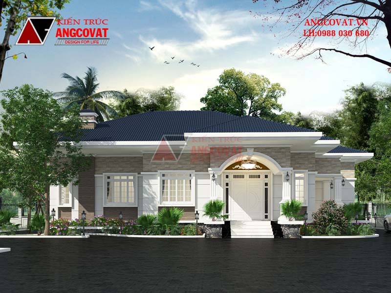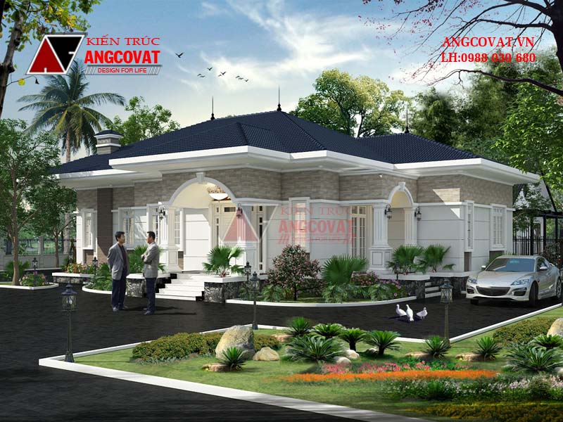 Biệt thự nhà vườn 1 tầng là mẫu nhà sang trọng luôn được các đại gia ở quê săn đón bởi vẻ đẹp bề thế cũng như sự tiện nghi trong cuộc sống sinh hoạt hàng ngày. Chính vì sự gần gũi với thiên nhiên và quen thuộc với lối sống ở quê nên chị Mây đã lựa chọn mẫu nhà 1 tầng cho bố mẹ mình chứ không phải là các mẫu biệt thự 2 tầng hay biệt thự 3 tầng bởi sẽ khó khăn cho bố mẹ chị trong việc di chuyển và sinh hoạt hằng ngày.