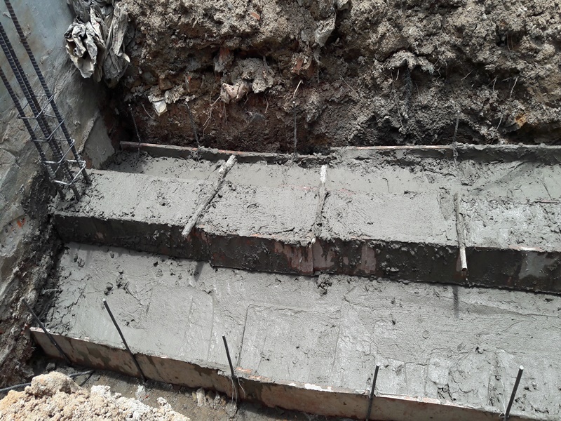 Đối với những công trình lớn và cần thời gian thi công nhanh. Ta có thể thi công đà kiềng với cotpha làm bằng gạch. Điều này có thể gây thêm chi phí, nhưng bù lại về tính ổn định và tốc độ thi công sẽ rất nhanh chóng. Kỹ thuật thi công đà kiềng được thực hinej qua các bước như sau:
