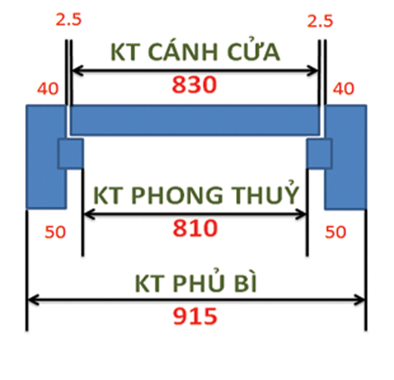 Với khuôn cửa dày 4,5 cm kích thước cửa cụ thể là