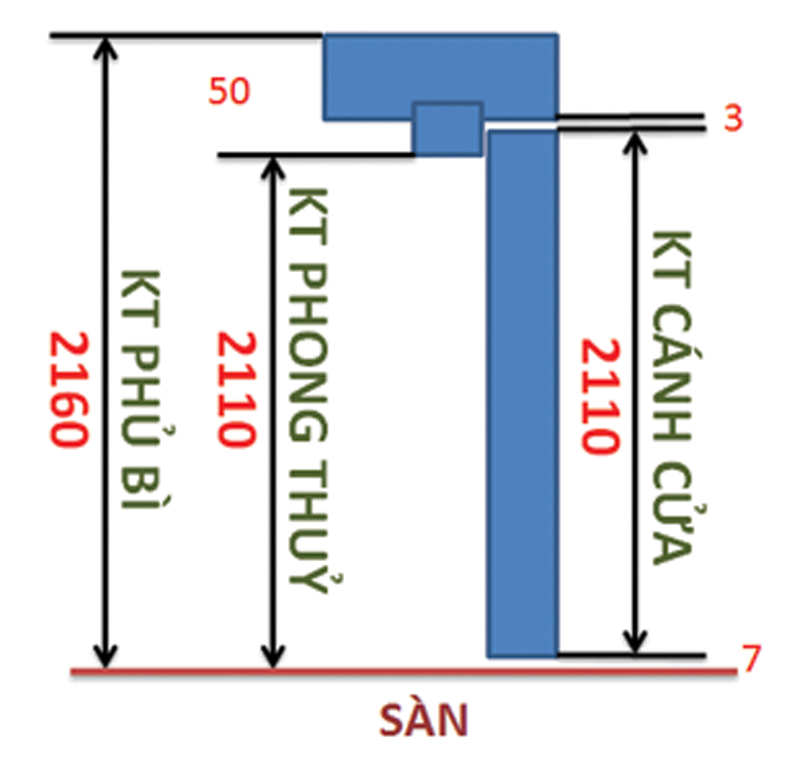 + Những cửa nhà thường có độ cao: 1,90 - 2,10 - 2,12 (mét)