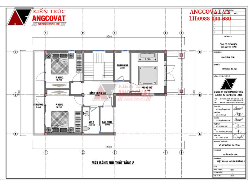 Ban công tầng 2 được ưu tiên cho diện tích rất lớn, theo như yêu cầu của khách hàng về không gian thoáng đãng này. Tổng diện tích ban công cho việc sử dụng là khoảng 10m2, rất rộng rãi, và thoải mái cho việc thông thoáng, tạo nên những khoảng trống nghỉ ngơi cho các thành viên trong gia đình. Phòng thờ của gia đình được đặt trang trọng tại vị trí tầng 2 của ngôi nhà, cùng với hướng của nhà nên hợp với phong thủy cũng như truyền thống văn hóa của người Việt.