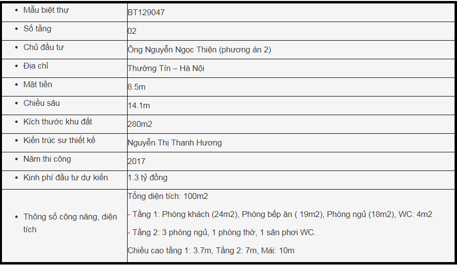 Một số thông tin về mẫu biệt thự 2 tầng kích thước 10x12m2 mái thái ở Hà Nội
