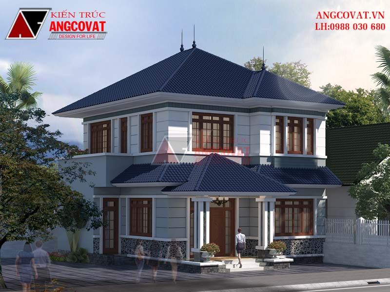 Mẫu số 1: Gợi ý câu trả lời xây nhà 2 tầng 100m2 hết bao nhiêu tiền thông qua mẫu biệt thự 2 tầng mái thái ở Hà Nội