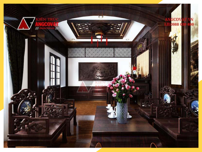 Thiết kế nội thất nhà 220m2 mái thái đẹp 1 tầng