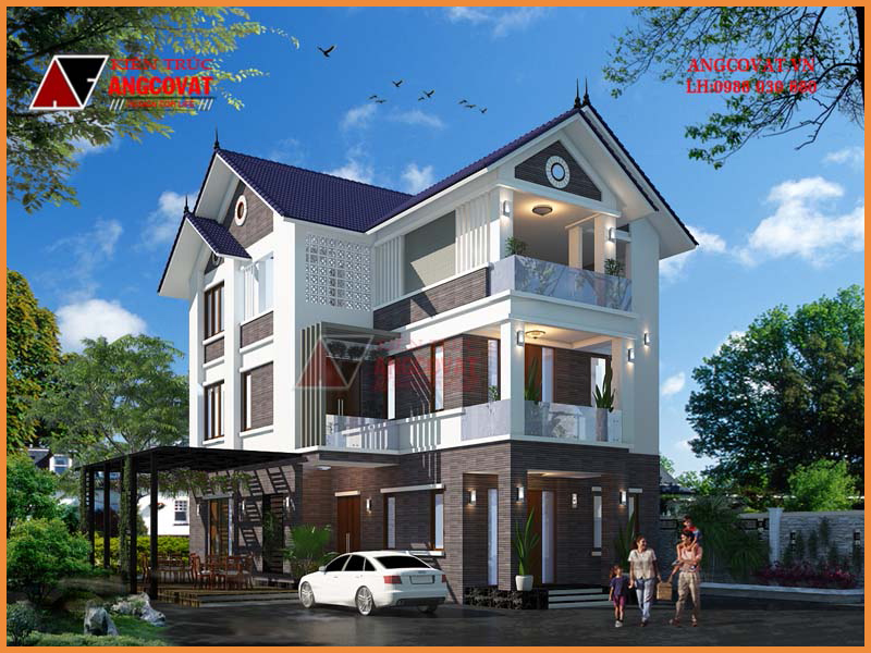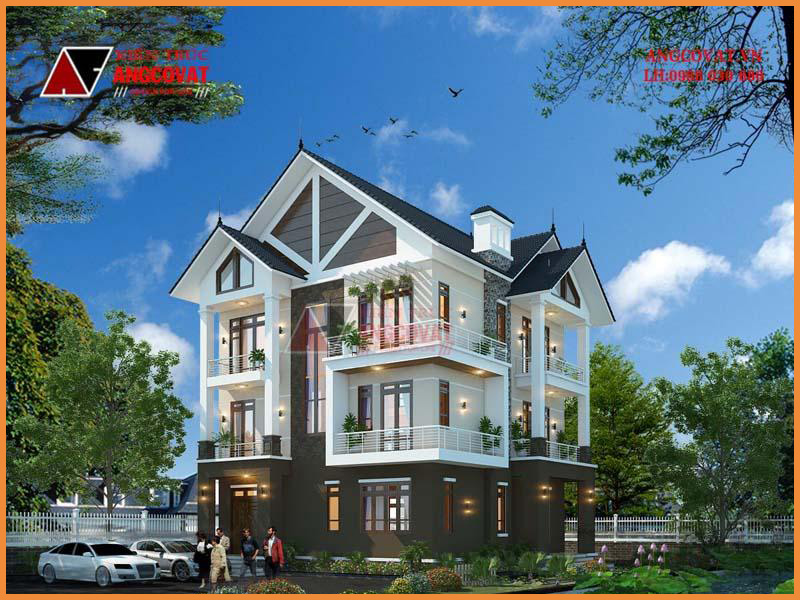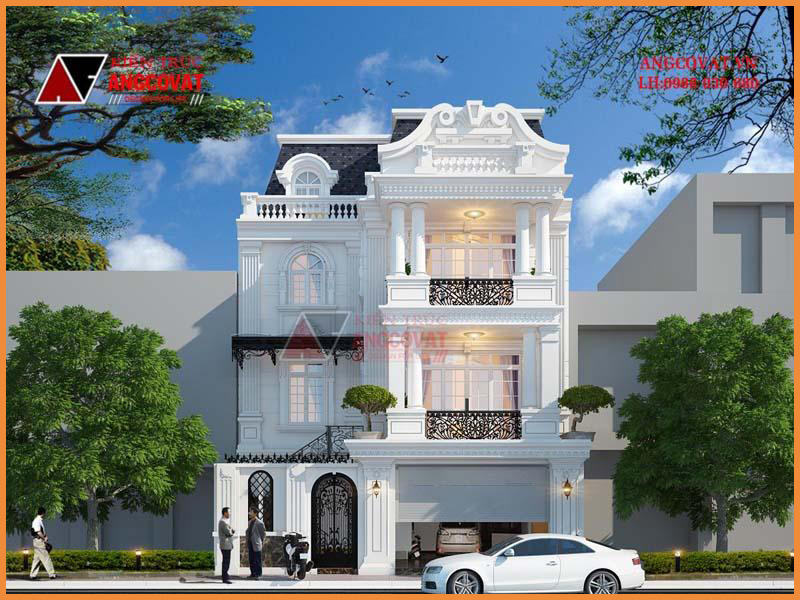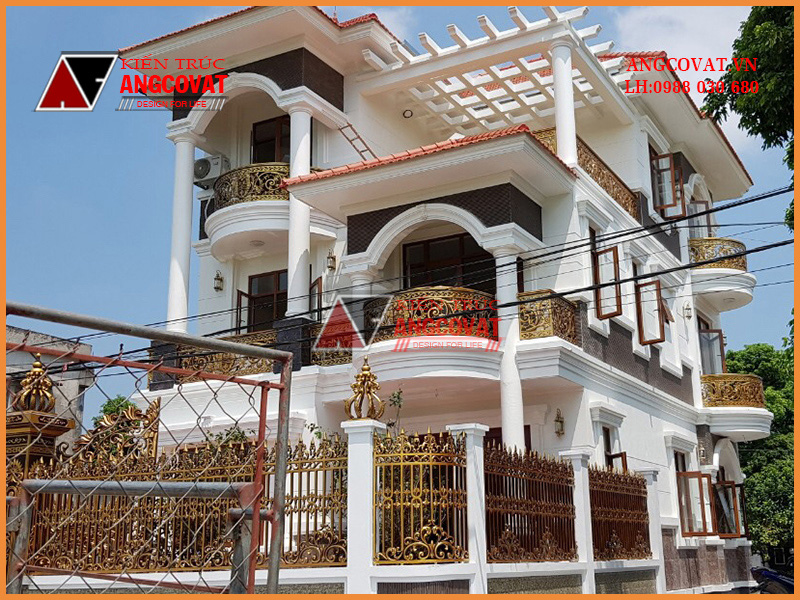 Màu sơn nhà 3 tầng đẹp cổ điển được thiết kế và thi công bởi Angcovat