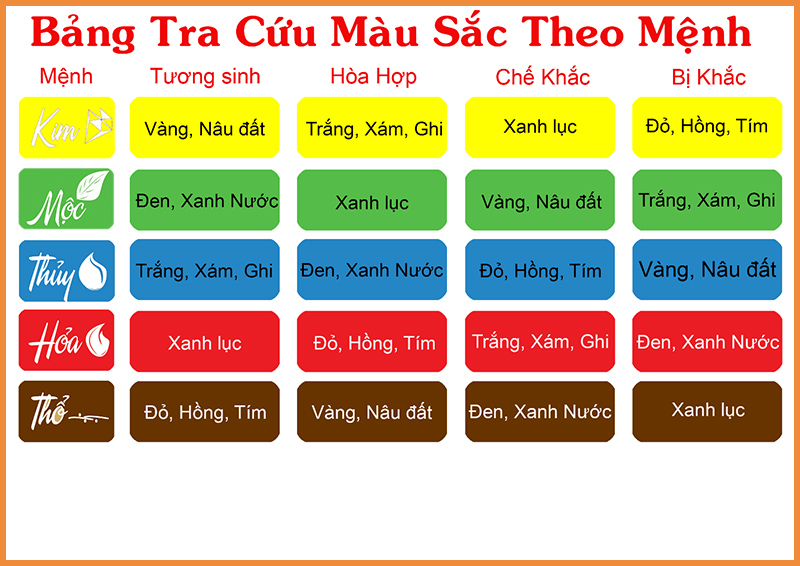 Trên đây là bảng phong thủy theo màu sắc, từ bảng này mà các gia đình có thể tham khảo để có lựa chọn màu sắc nhà 3 tầng đẹp, những màu sắc tương sinh và tương khắc để mang đến tài lộc và may mắn cho gia đình.