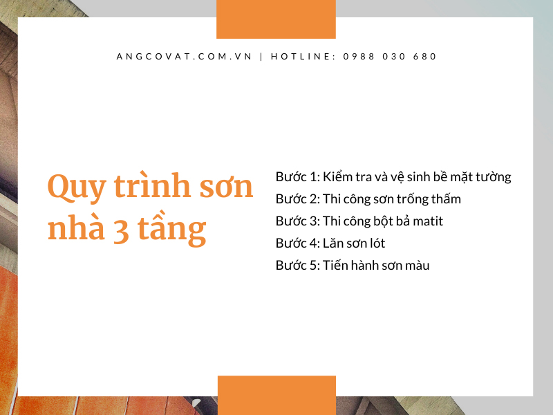 Để có màu sơn nhà 3 tầng đẹp cũng cần phải áp dụng quy trình sơn, các thợ thi công bắt buộc phải được trang bị các kiến thức về kỹ thuật sơn để cho ra kết quả tốt. Dưới đây là quy trình sơn nhà 3 tầng: