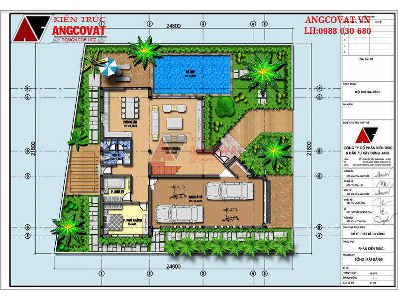 Mặt bằng quy hoạch tổng thể biệt thự sang trọng hiện đại có bể bơi, vườn hoa