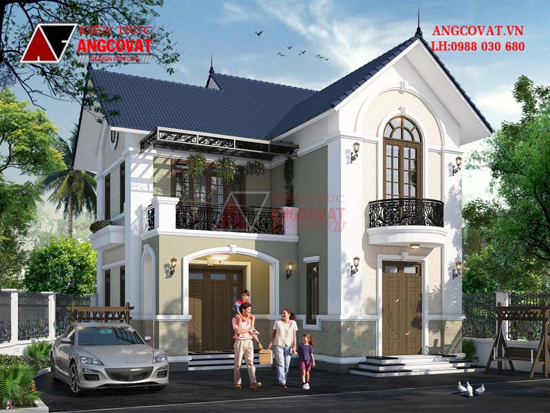 Mẫu 11: Thiết kế mẫu nhà biệt thự 2 tầng mái dốc bán cổ điển sang trọng