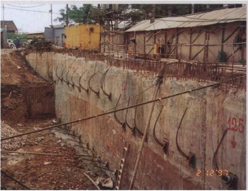 Đào đất đến đâu thì thi công hệ giằng giữ tường chắn đến đó,có thể bằng hệ thống thép hình hoặc hệ neo phụt vào đất tùy điệu kiện địa chất và điều kiện thi công. Công việc này là cốt yếu,rất quan trọng khi thi công đào đất tầng hầm,giữ cho đất ,nước ngầm không thâm nhập vào công trường đang thi công,đảm bảo cho các quá trình thi công được diễn ra bình thường