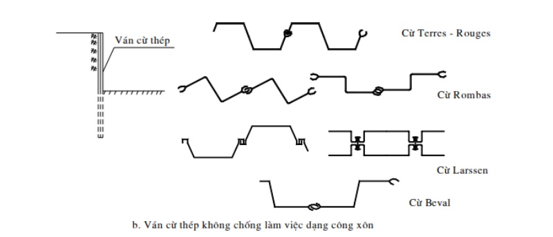 Phương án thi công đóng cừ ván thép không chống làm việc dưới dạng công xôn áp dụng khi hố đào nông, có nước ngầm- lập biện pháp thi công tầng hầm