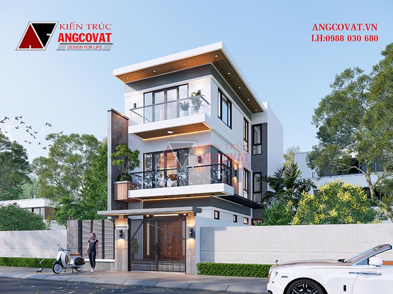 Thiết kế biệt thự phong cách tối giản vẫn đảm bảo công năng hoàn thiện với gara và ban công đầy đủ. Mẫu thiết kế biệt thự 3 tầng mái lệch tối giản đến từng chi tiết, hình khối, thể hiện được vẻ đẹp đặc trưng vốn có, mang đến cho ngôi nhà sự ấn tượng và trọn vẹn bậc nhất.