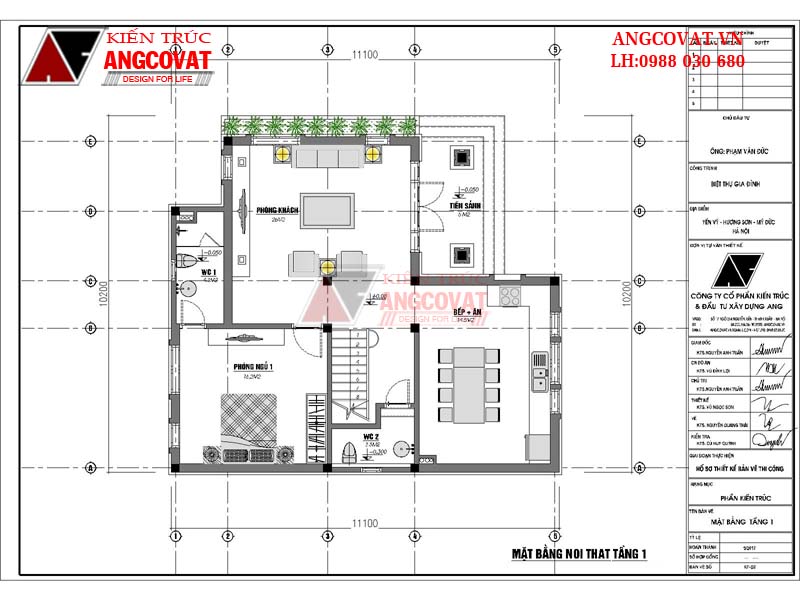 Là một trong những đơn vị thiết kế kiến trúc hàng đầu trong lĩnh vực thiết kế biệt thự, nhà ở, các KTS Angcovat đã đưa ra rất nhiều hồ sơ thiết kế, phương án thi công các mẫu biệt thự đẹp thuyết phục được rất nhiều khách hàng, chủ đầu tư khó tính trên cả nước về chi phí xây dựng, công năng sử dụng nhà ở, kiến trúc… Mẫu thiết kế nhà mặt tiền 11m 2 tầng được kiến trúc sư Angcovat thiết kế với dự trù chi phí ở mức khá phù hợp khoảng 1.2 tỷ đồng. Vị trí nhà ở được KTS định vị tại phần trung tâm của lô đất, diện tích nhà ở được xác định 11m (mặt tiền) và 10m (chiều sâu). Với ưu thế diện tích sử dụng đất lớn, mặt tiền rộng nên việc mở rộng diện tích, không gian xanh được các KTS đưa ra mẫu thiết kế nhà mặt tiền 11m nhằm đảm bảo tính hài hoà giữa thiên nhiên và con người cho thiết kế.