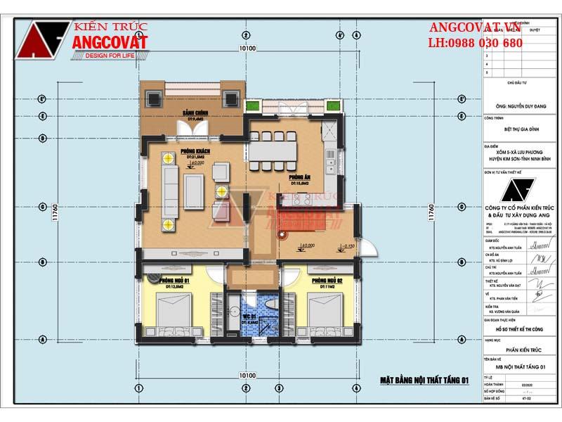 Mặt bằng tầng 1 mẫu nhà 10x12m 2 tầng diện tích 100m2