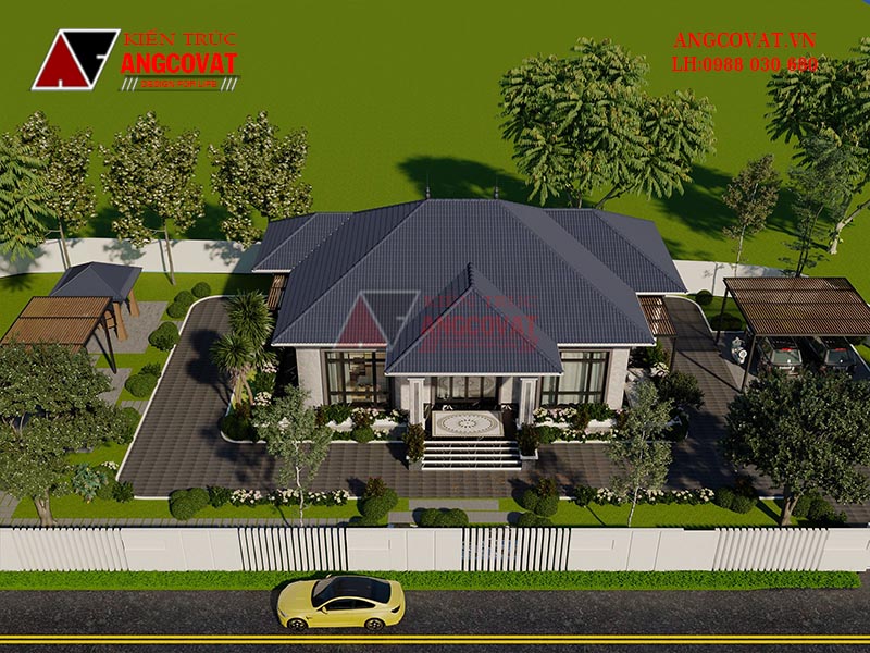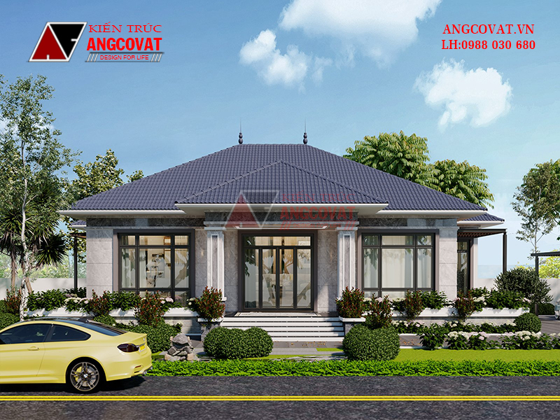 Cùng kiến trúc Angcovat tìm hiểu thông tin chi tiết về ngôi nhà biệt thự vườn 1 tầng đẹp này.